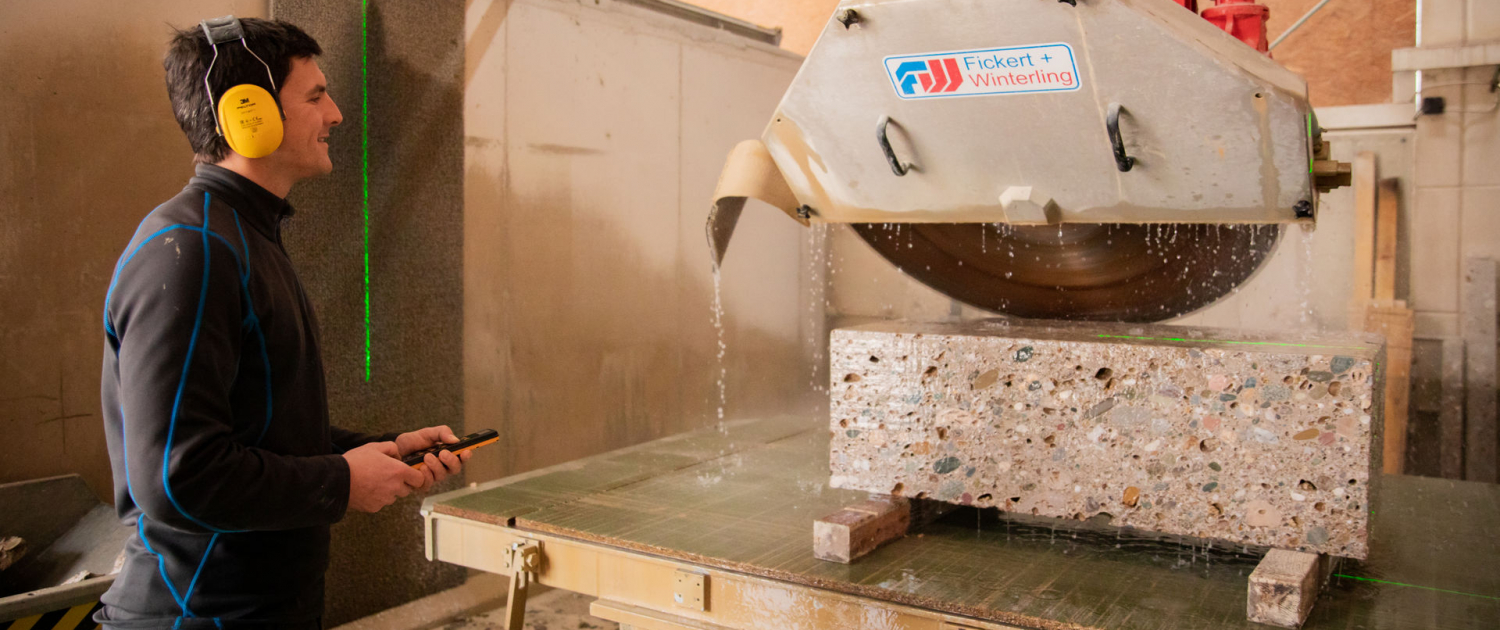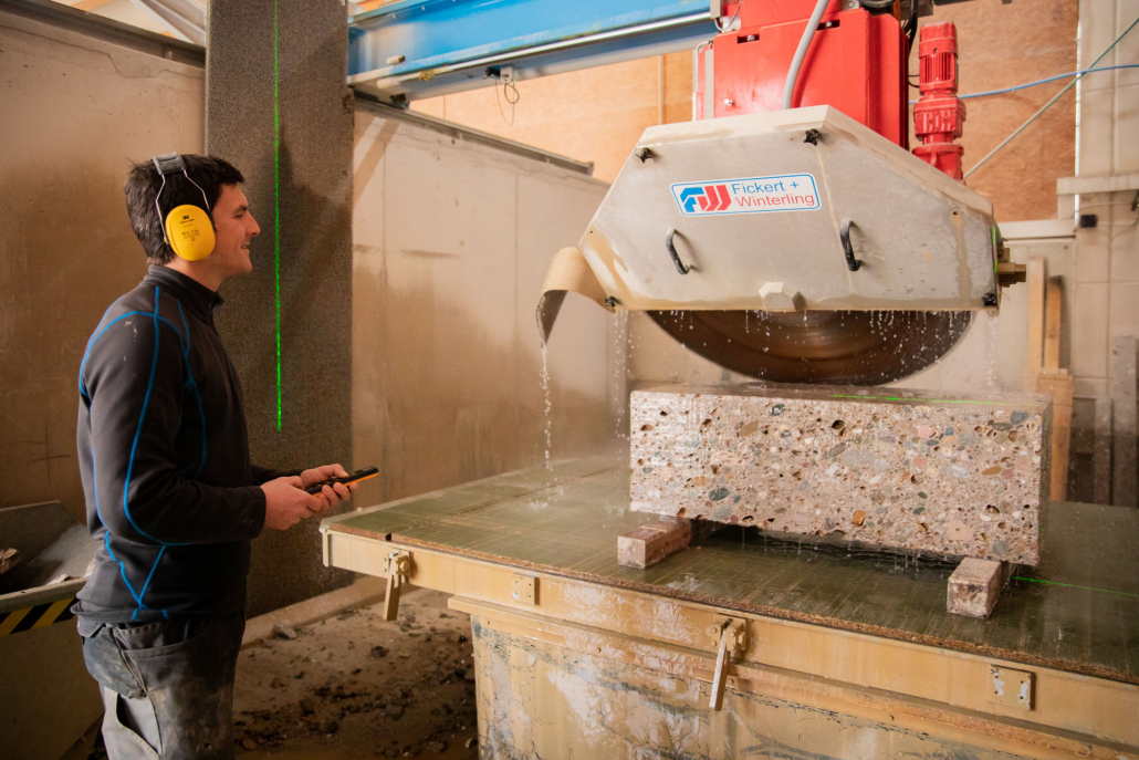 Als Spezialist für die Gewinnung, Bearbeitung und Veredelung des Natursteins Nagelfluh haben wir den Anspruch den Wünschen unseren Kunden umfassend gerecht zu werden. Daher haben wir in den letzten Jahren unsere Fertigung mit modernen Maschinen und Anlagen stetig erweitert. Beispielsweise können wir mit unserer neuen CNC gesteuerten Seilsäge Steinblöcke bis zu einer Dimension von 3,45m Breite und 1,95m Höhe herstellen.